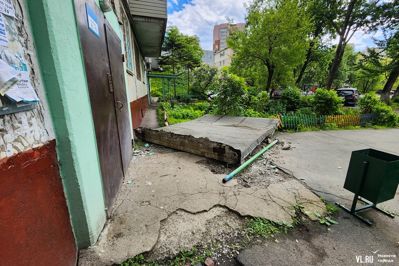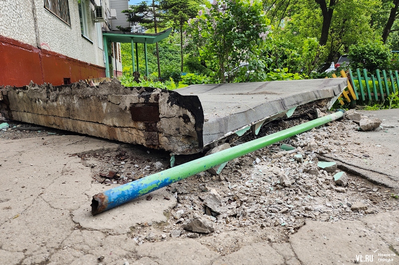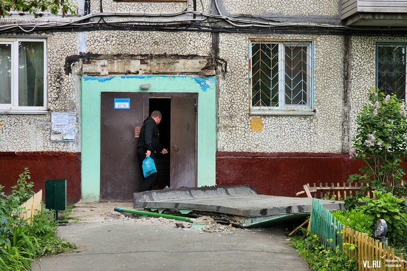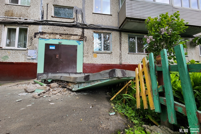 «Если бы на голову – все»: бетонный козырек подъезда обрушился во Владивостоке (фото)