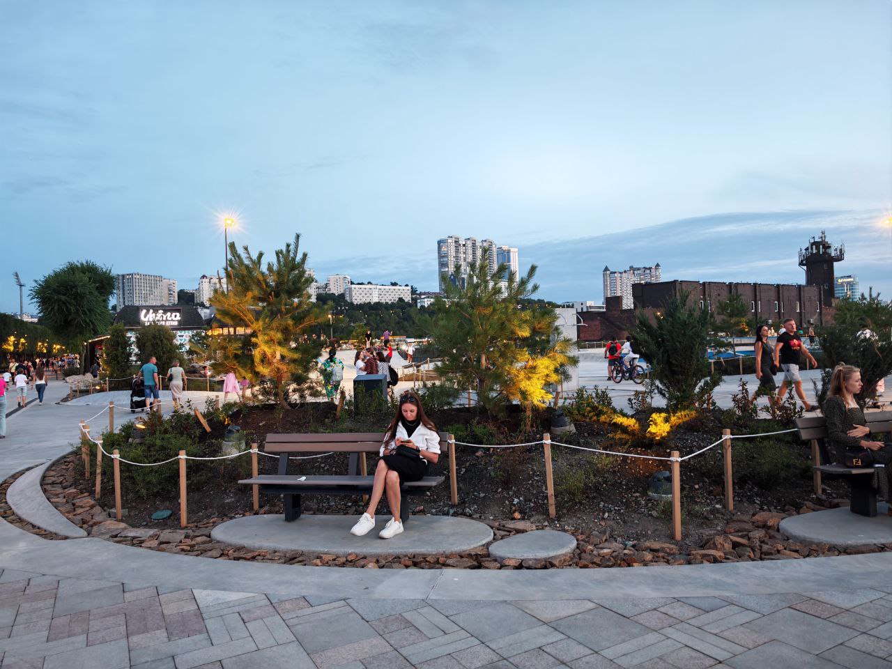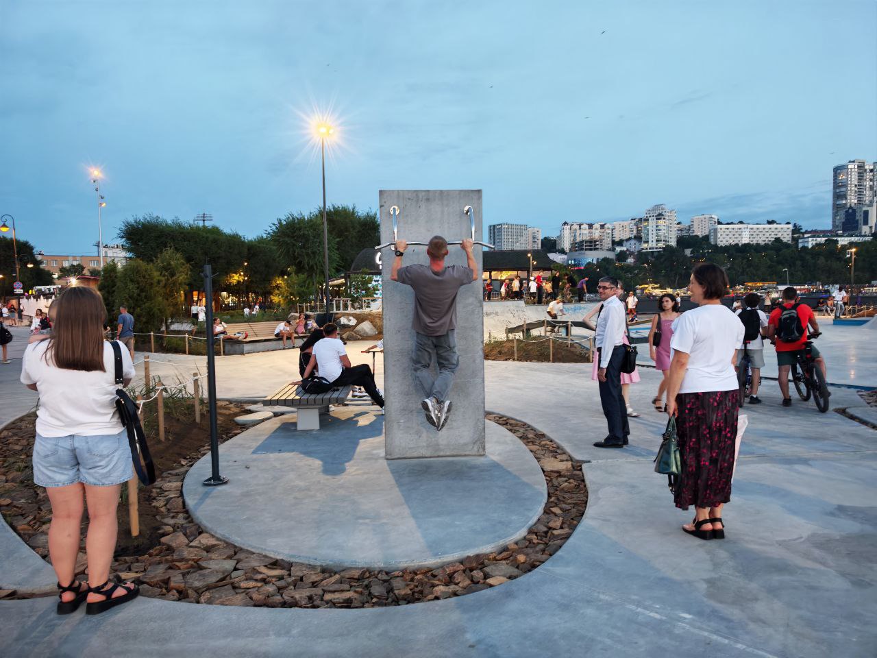 — На этом участке набережной реализовано несколько основных принципов, которые формируют ее идентичность. Одна из задач – создать полноценный спортивный променад у моря. Теперь между ним и общественным пространством — лишь прозрачное ограждение, а рядом со скейт-парком появилась зона для воркаута, — рассказывает архитектор и руководитель компании-подрядчика Concrete Jungle Феликс Машков. — Этой осенью, когда позволит погода, мы планируем пересадить туда растения, которые можно встретить в приморском лесу. Это дубы, ясени, сосны, розы. Наряду с этим мы высадим и много молодых растений. В итоге здесь появится настоящий приморский лес, который будет давать тень. А выходя из него, можно будет увидеть Амурский залив. Радует, что благоустройство набережной Спортивной гавани будет продолжено. Уже в следующем году в нас в планах — работы на участке вдоль спорткомплекса «Олимпиец» до ресторана «Пятый океан».