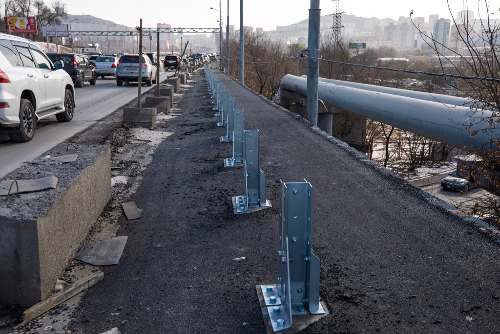 Наконец-то забрезжил свет в конце туннеля на Некрасовском путепроводе во Владивостоке. Специалисты компании-подрядчика «Бетон-Сервис» приступили к установке пешеходного ограждения, которое монтируют со стороны остановки «Молодёжная». Завершить работы подрядная организация планирует до конца года.