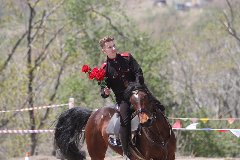 Команда всадников спортивной конно-трюковой военно-патриотический группы «Боевая лошадь» совместно с конно-спортивным клубом «Fast Horse» представила зрителям новую программу, подготовленную специально к празднованию 78-й годовщины Победы советского народа в Великой Отечественной войне.