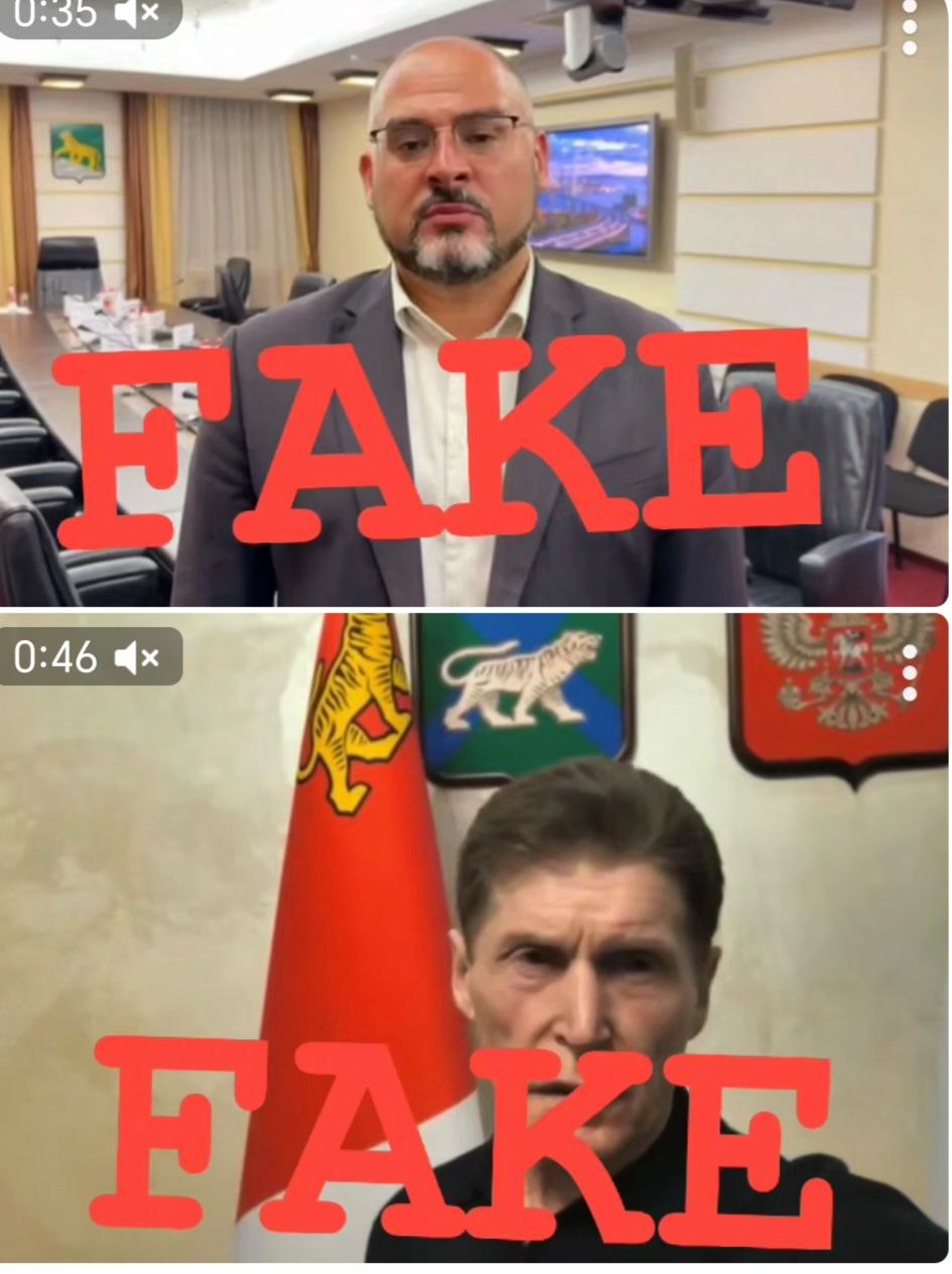 В частности, фейковый клон Кожемяко утверждает о каких-то мифических поставках топлива из Китайской народной республики. А клон мэра Владивостока Шестакова говорит, что «вынужден сообщить о пересмотре цен на проезд в транспорте во Владивостоке с 1 сентября».