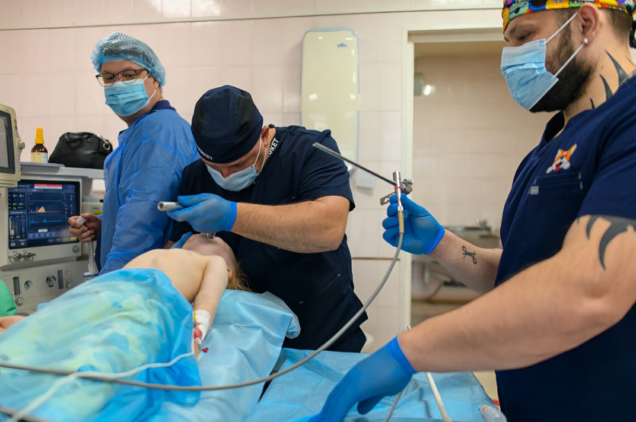 Эндоскописты Алексей Шаповалов и заведующий отделением Алексей Ткачук обнаружили крупный камень в трахее и успешно его удалили. Однако при дополнительном обследовании оказалось, что в дыхательных путях находится ещё несколько мелких камней.