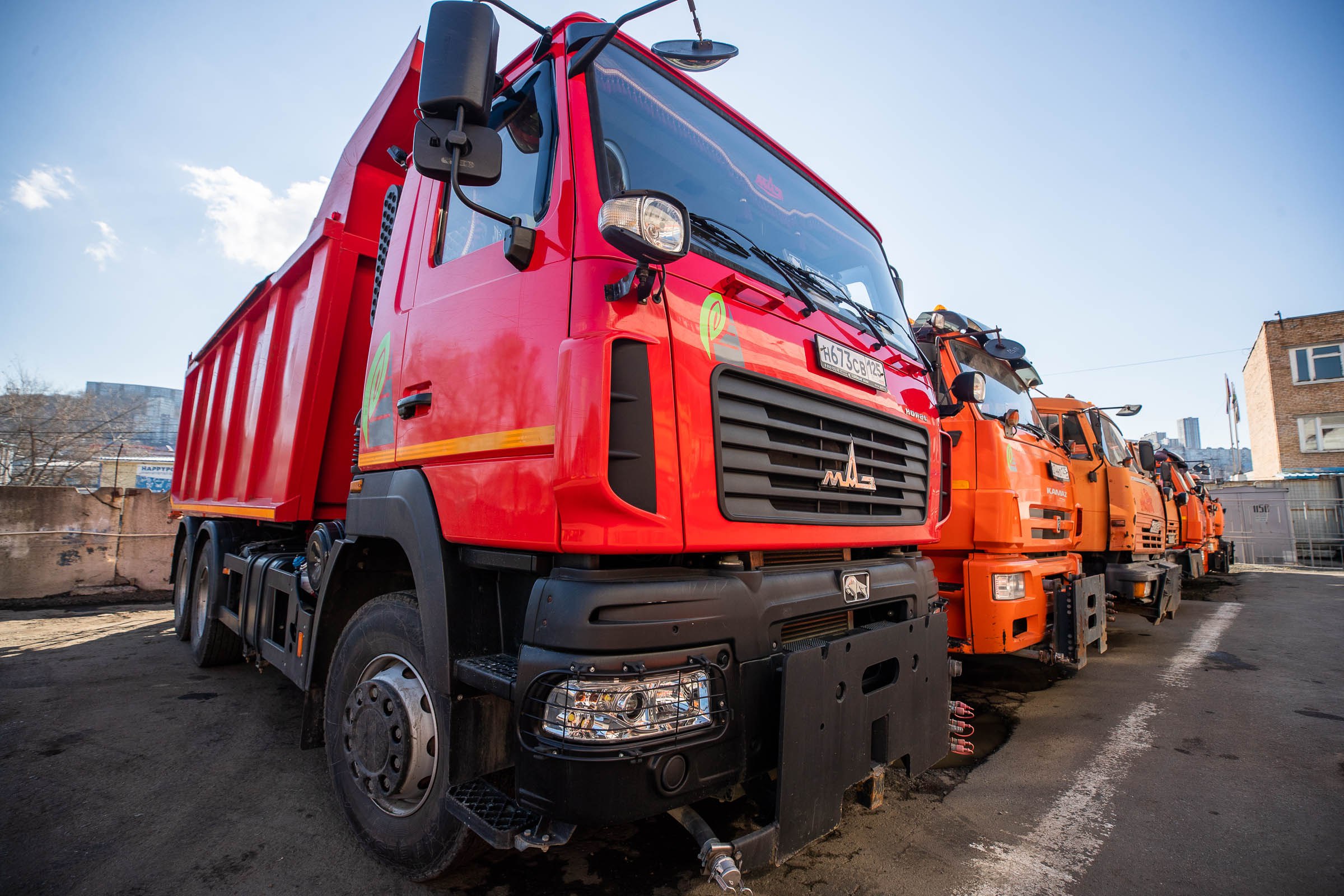 – У нас сейчас пять производственных подразделений. Первое, самое большое, – это санитарная уборка улиц города: и механизированная, и ручная. Есть зимняя уборка, есть летняя. Летом мы используем поливомоечные, подметально-уборочные и лееромоечные машины – у нас есть такая чудо-техника, комбинированная дорожная машина, на базе самосвала. Она может поливать улицы, мыть леера и просто работать в режиме самосвала, в зависимости от потребностей. Эта машина поливает, смачивает дорожное полотно, в том числе обеспыливает грунтовые дороги. Зимой на этой же машине мы посыпаем дороги реагентами.