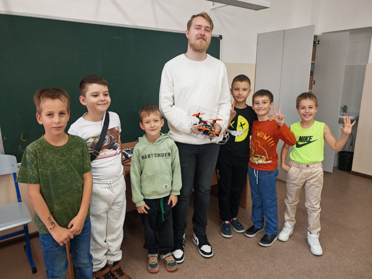 — Не рано ли учить ли учить БПЛА вот с таких малых лет? — поинтересовались мы у преподавателя Владислава Фролова, заместителя директора школы по воспитательной работе. Отметим, что Фролов по образованию учитель начальных классов, а таже учитель информатики и математики.
