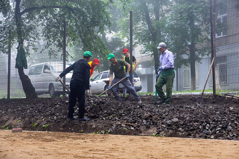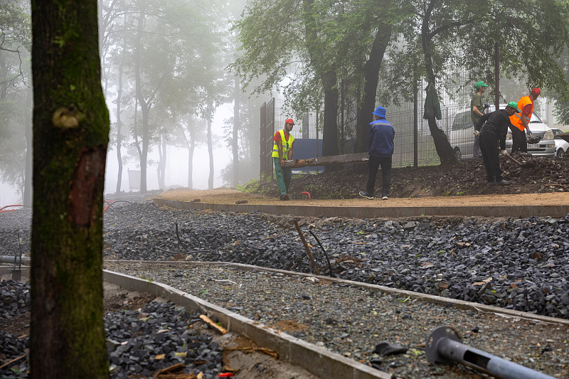 Во Владивостоке полным ходом идёт благоустройство сквера у Приморского энергетического колледжа на Борисенко, 102. «Несмотря на дожди, мы держим график, но есть моменты, которые требуют доработки», — заявил мэр Константин Шестаков во время инспекции объекта 19 июля.
