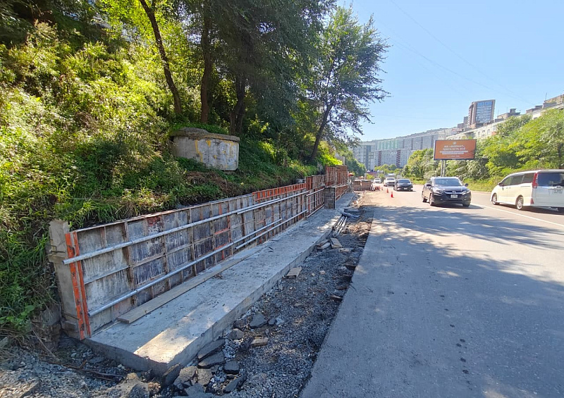 Кроме того, в эти дни продолжаются работы по ремонту других подпорных стен на улицах Владивостока. Сейчас специалисты компании-подрядчика выполняют финальные штрихи на объекте в районе Луговой, 58-64. Здесь уже выполнены основные строительные работы, а специалисты исправляют мелкие замечания.