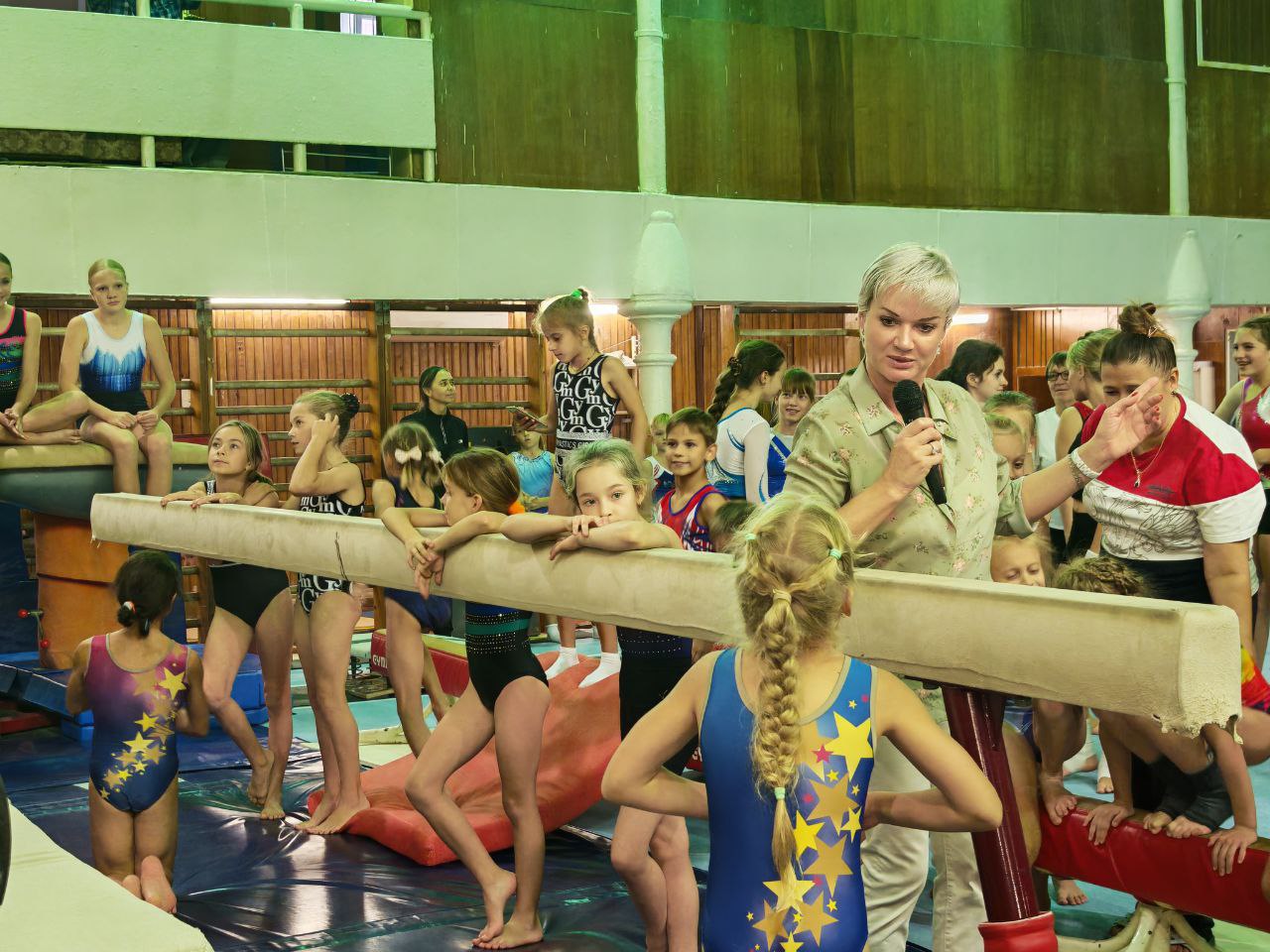 К приезду именитой гостьи готовились. Тренировочный зал был полон — маленькие спортсмены отрабатывали элементы, кто на перекладине, кто на коне, кто на ковре. Всем хотелось не ударить в грязь лицом перед звездой спортивной гимнастики мирового уровня.