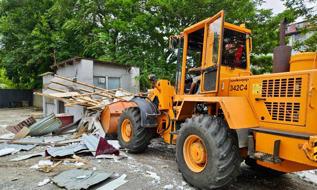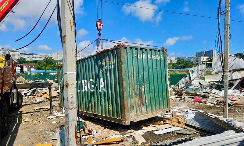 Кроме уборки на бухте Лазурной, с  улиц Владивостока вывозят размещенные гражданами самовольно гаражи, торговые павильоны, рекламные конструкции, шлагбаумы и различные виды ограждений. Только за прошлую неделю муниципальная служба демонтировала 21 такой объект.