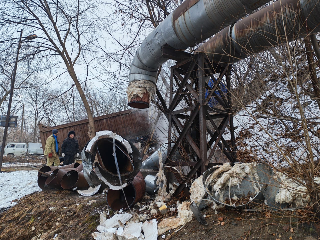 В Находке введён локальный режим ЧС из-за аварии на магистральном теплопроводе. Минувшей ночью у грузовика с металлоломом отказали тормоза и он въехал в теплотрассу. В итоге — в городе введён локальный режим ЧС из-за аварии на магистральном теплопроводе.
