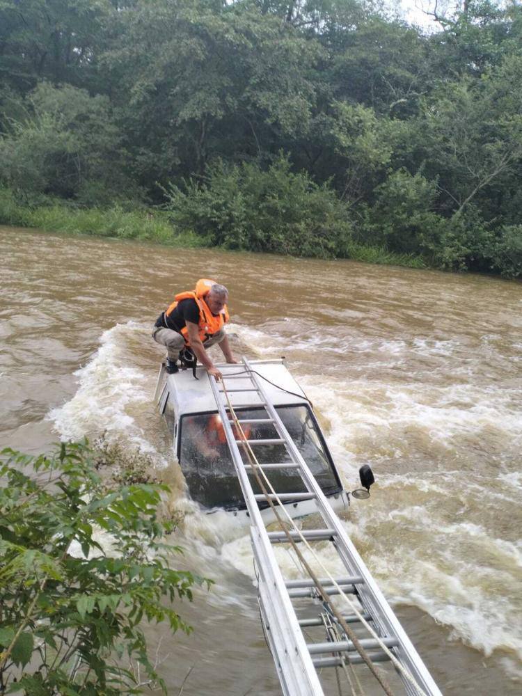Присшествие случилось вечером 1 сентября в поселке Преображение,  в районе садовых товариществ. Из-за сильного потока воды, вызванного ливнями,  машину с дороги снесло в реку.