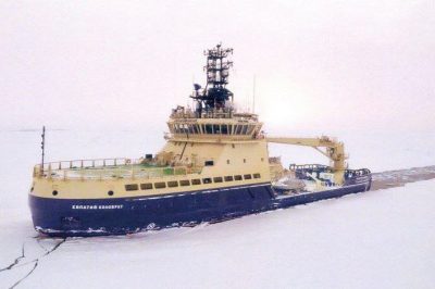 Военный ледокол спас из ледового плена зажатый льдами теплоход